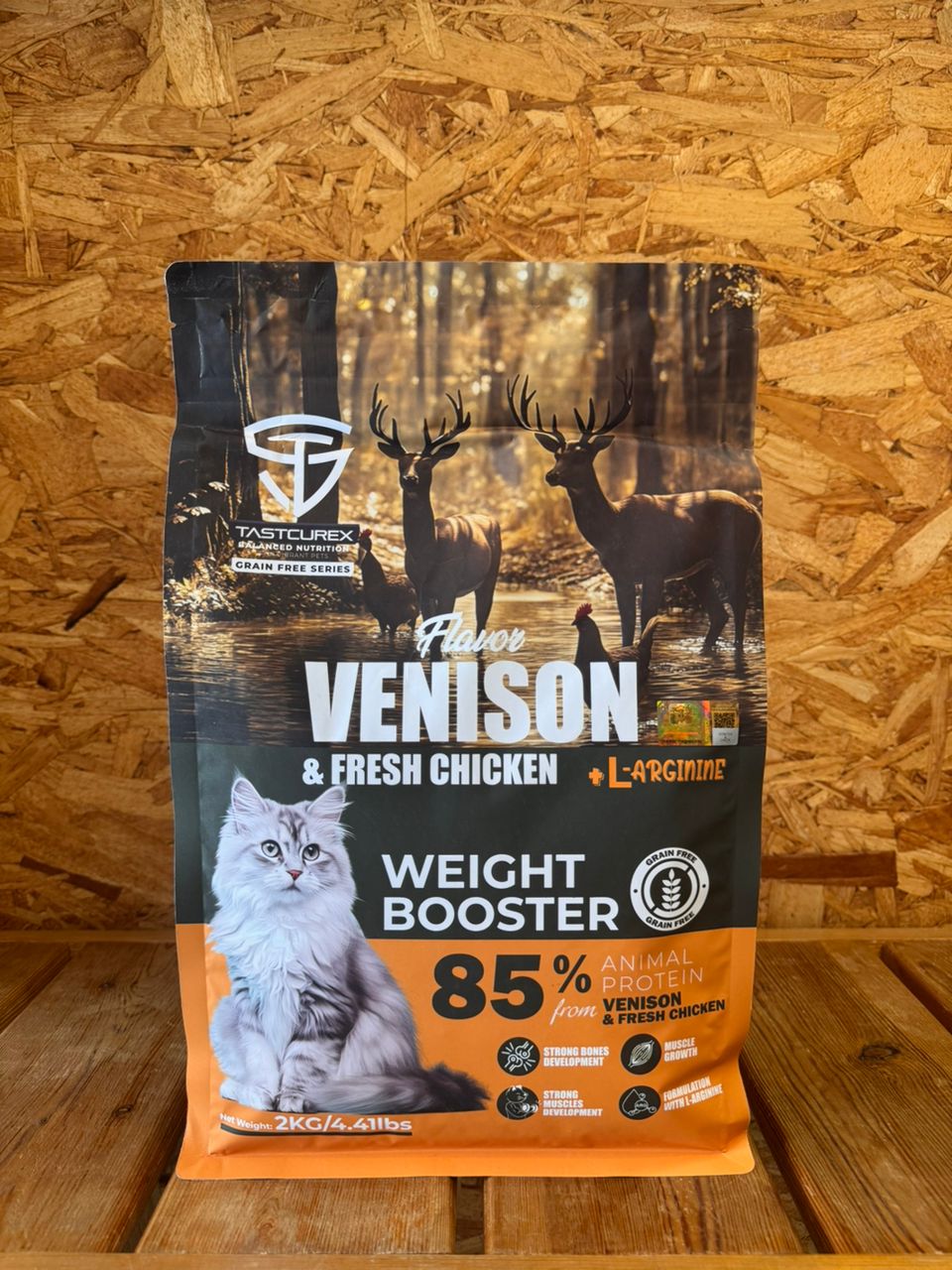 Compositions: Fresh venison meat (32%), fresh chicken meat (28%), venison meal (15%), chicken meal (10%), sweet potato (17%), animal fat (preserved by tocopherols), hydrolyzed venison protein (5%), chickpeas (5%), peas (2.2%), antarctic krill oil (1.8%), apples, carrots, brewer’s yeast, yucca schidigera extract, cranberries, blueberries.